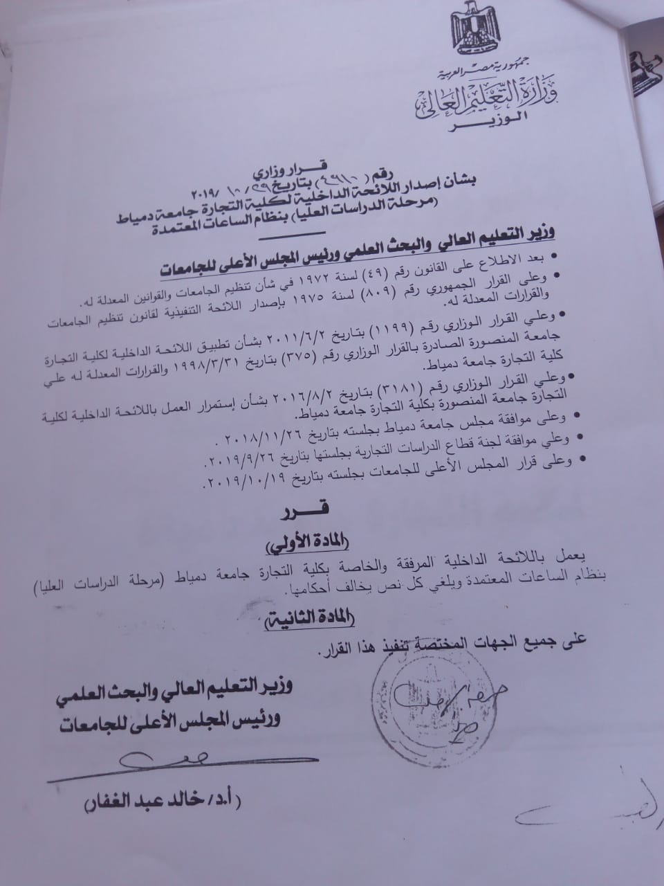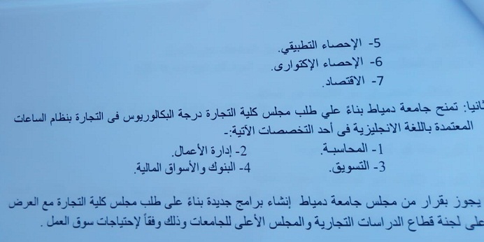 بشرى ساره لطلاب جامعة دمياط كلية التجارة بناء على توجيهات السيد الاستاذ الدكتور /رئيس الجامعة وتحت اشراف السيد الاستاذ الدكتور /عميد الكلية ومجهودات الاقسام العلمية بالكلية تم اعتماد لائحتى البكالوريوس والدراسات العليا بنظام الساعات المعتمده حيث تعد كلية التجارة - جامعة دمياط من اوائل كليات التجارة على مستوى الجمهورية التى تعتمد لائحه الساعات المعتمده والتى سوف يتم تطبيقها اعتبارا من العام الجامعى 2021/2020 والتى تعد طفرة قوية على المستوى العلمى والاكاديمى حيث تمنح التخصصات التالية