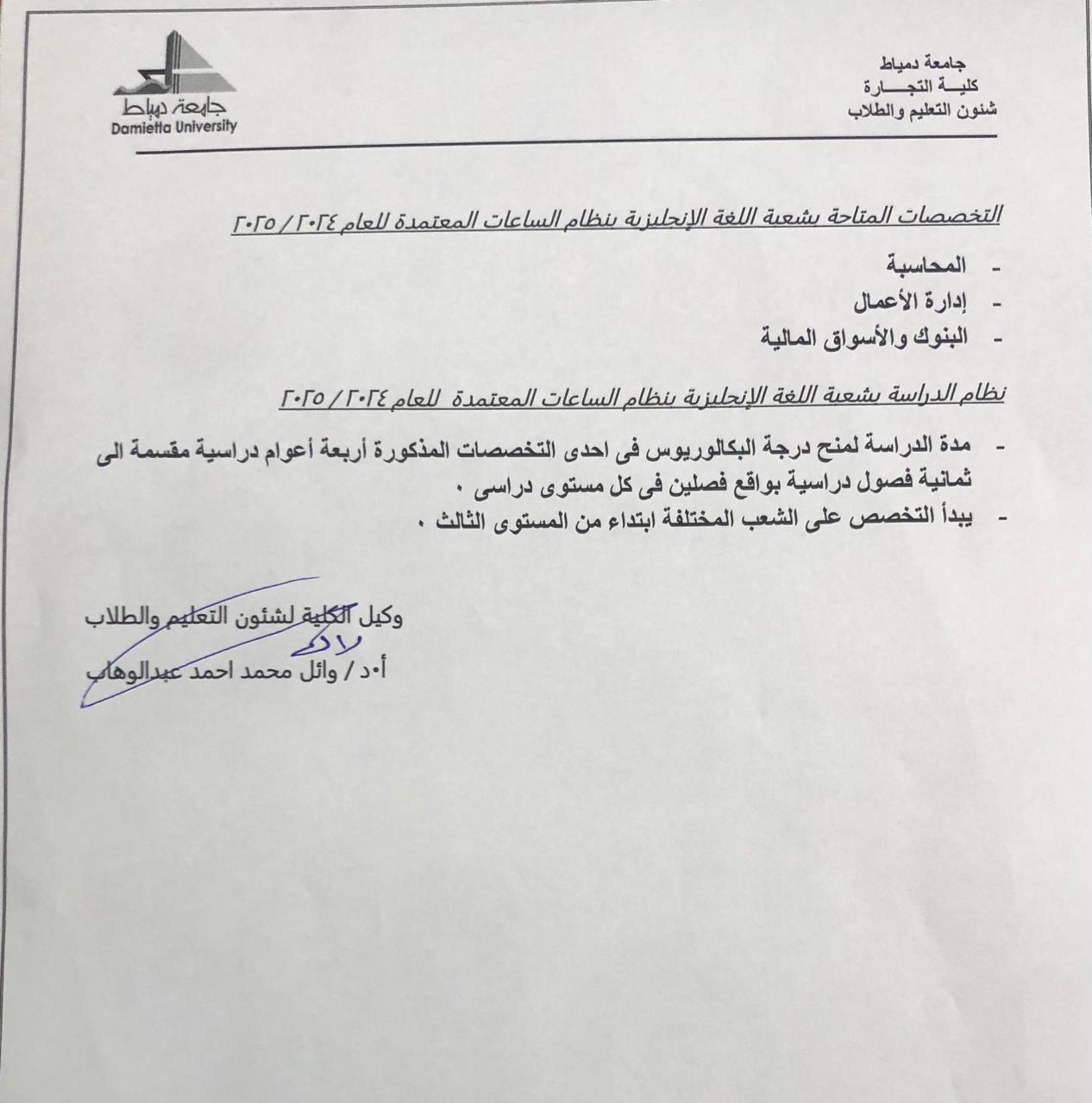 على الطلاب الراغبين فى التقدم إلى شعبة اللغة الانجليزية للعام الجامعى 2025/2024 من طلاب الانتظام فقط المرحلة الأولى عليهم سرعة سحب طلب إلتحاق شعبة اللغة الانجليزية من على موقع الكلية الرسمى :-